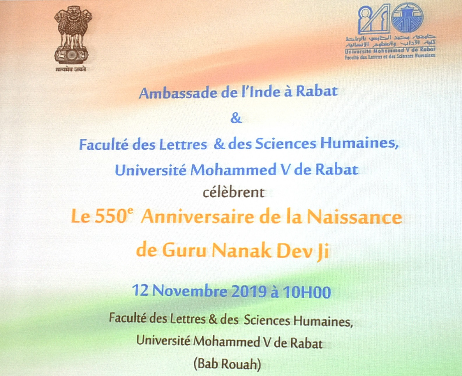 Home › Events › Celebration of 550th birth anniversary of Guru Nanak Dev Ji at University Mohammed V in Rabat, Morocco. #GuruNanak550 @IndianDiplomacy @550yrsGuruNanak #GuruNanakJayanti #gurupurab #GuruNanakDevJi
