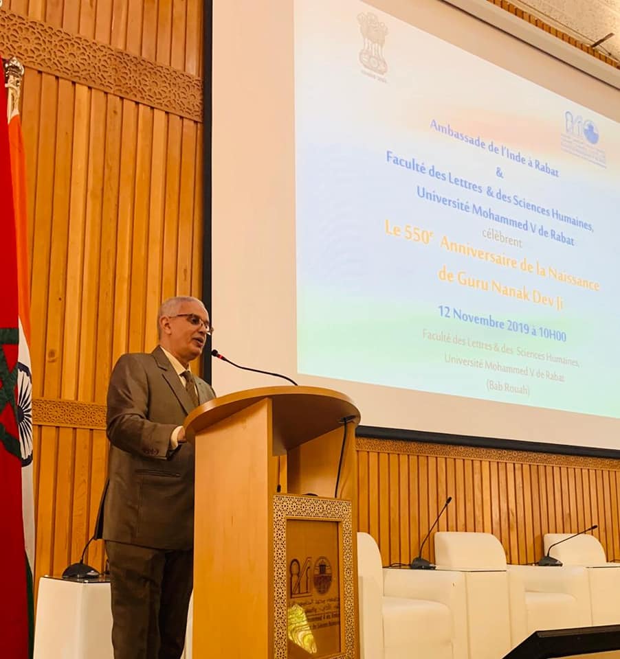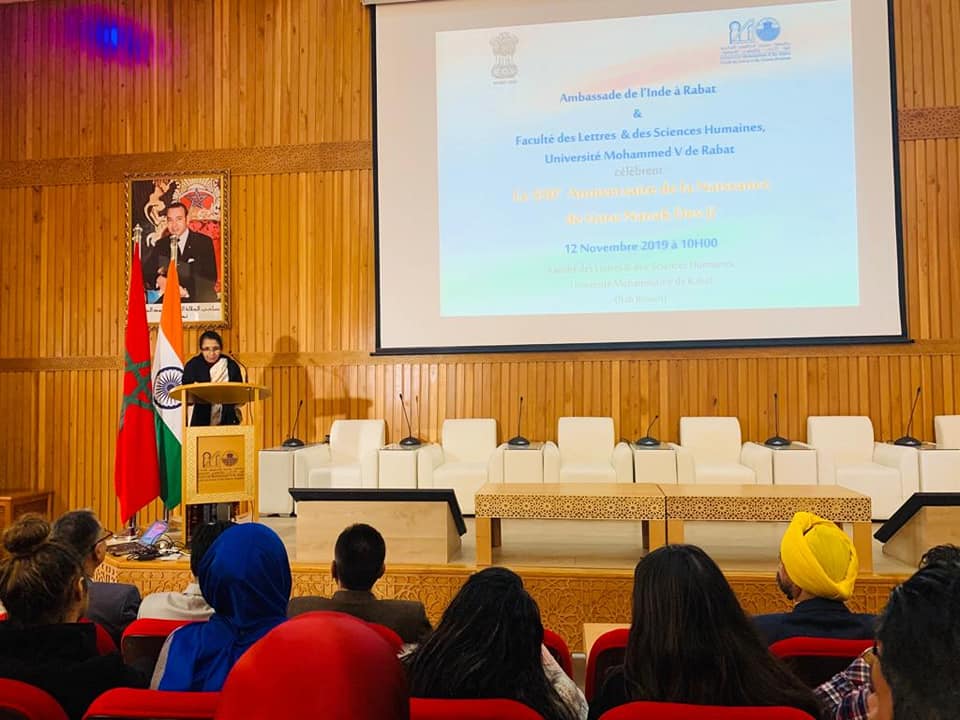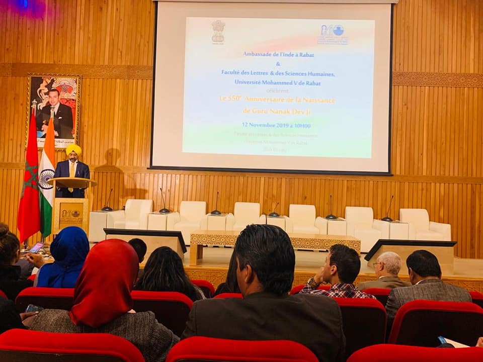 Home › Events › Celebration of 550th birth anniversary of Guru Nanak Dev Ji at University Mohammed V in Rabat, Morocco. #GuruNanak550 @IndianDiplomacy @550yrsGuruNanak #GuruNanakJayanti #gurupurab #GuruNanakDevJi