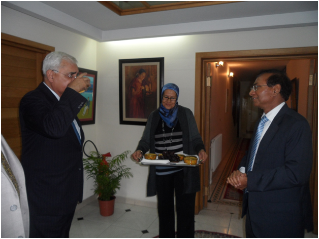 Traditional welcome of Hon'ble EAM at Embassy of India, Rabat